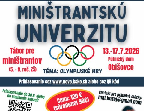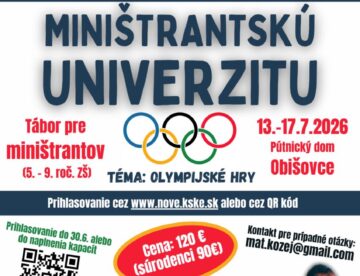 Dávame do pozornosti tradičnú miništrantskú univerzitu, ktorá sa uskutoční od 13. do 17. júla 2026 v Pútnickom dome bl. Anny Kolesárovej v Obišovciach. Tento rok je pre účastníkov pripravená špeciálna téma –…