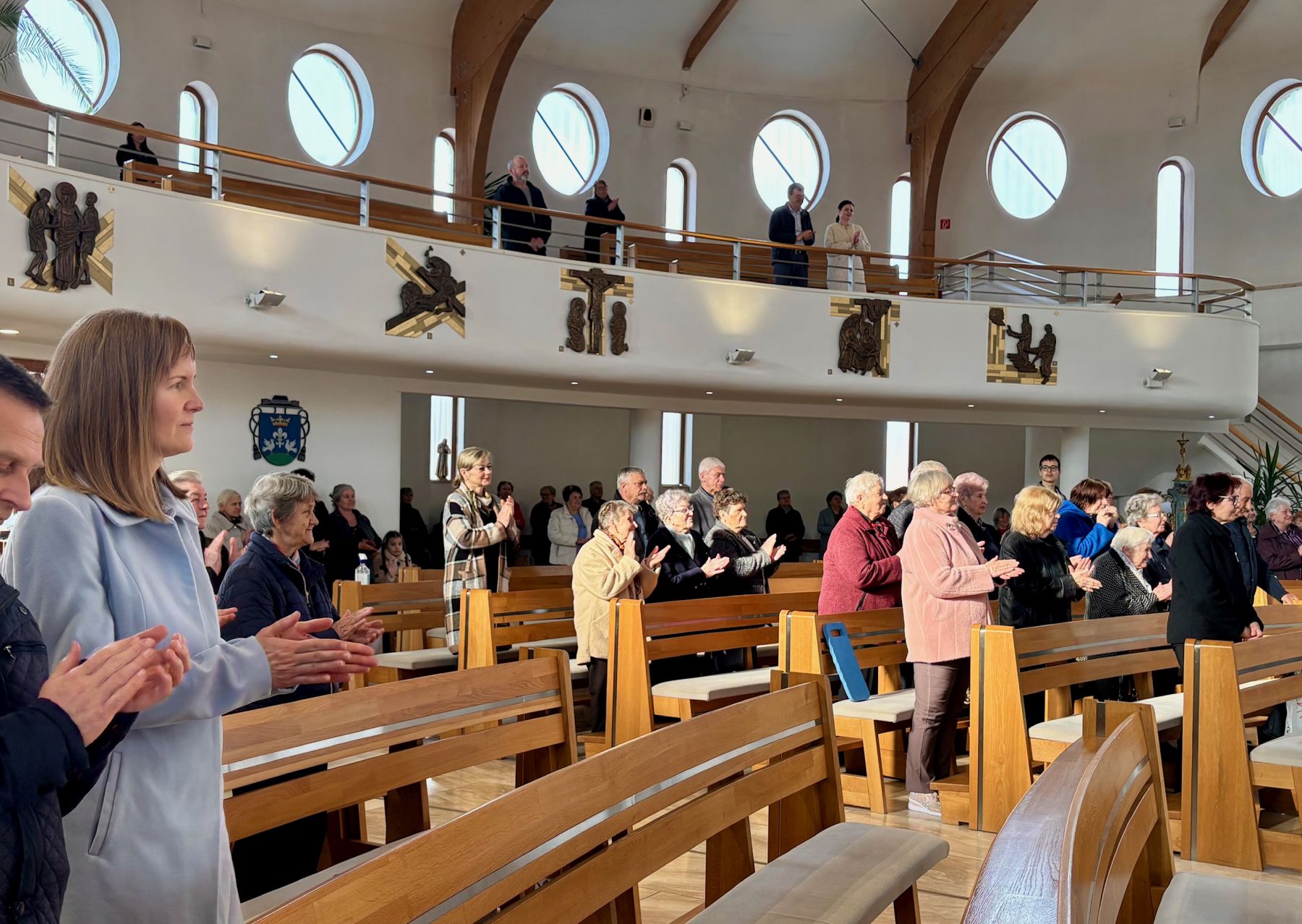 Po krížovej ceste sme s o. Borisom Byčánkom ukončili cyklus pôstnych kázní s lajtmotívom „stretneme sa tam, kde som si ťa zamiloval“. Dnes to bolo pod zahaleným Ježišovým krížom, ale s viditeľným nápisom Ježiš Nazaretský, židovský kráľ‘, ktorý je tam už po stáročia vrytý pre nás všetkých, aby nám pripomínal, že práve pod krížom je to miesto, kde nás Boh miluje najviac.