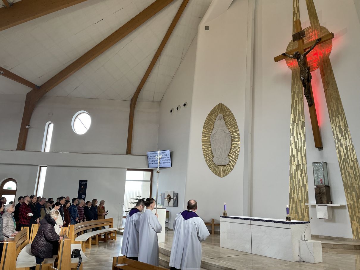 Počas tretej pôstnej nedele sa manželské páry našej farnosti zišli pri modlitbe Krížovej cesty za uzdravenie manželstiev. Spoločne sme prosili Božského Spasiteľa, aby zhliadol na naše rodiny a svojou predrahou krvou očistil a uzdravil všetky manželstvá v našej farnosti i v celej krajine.