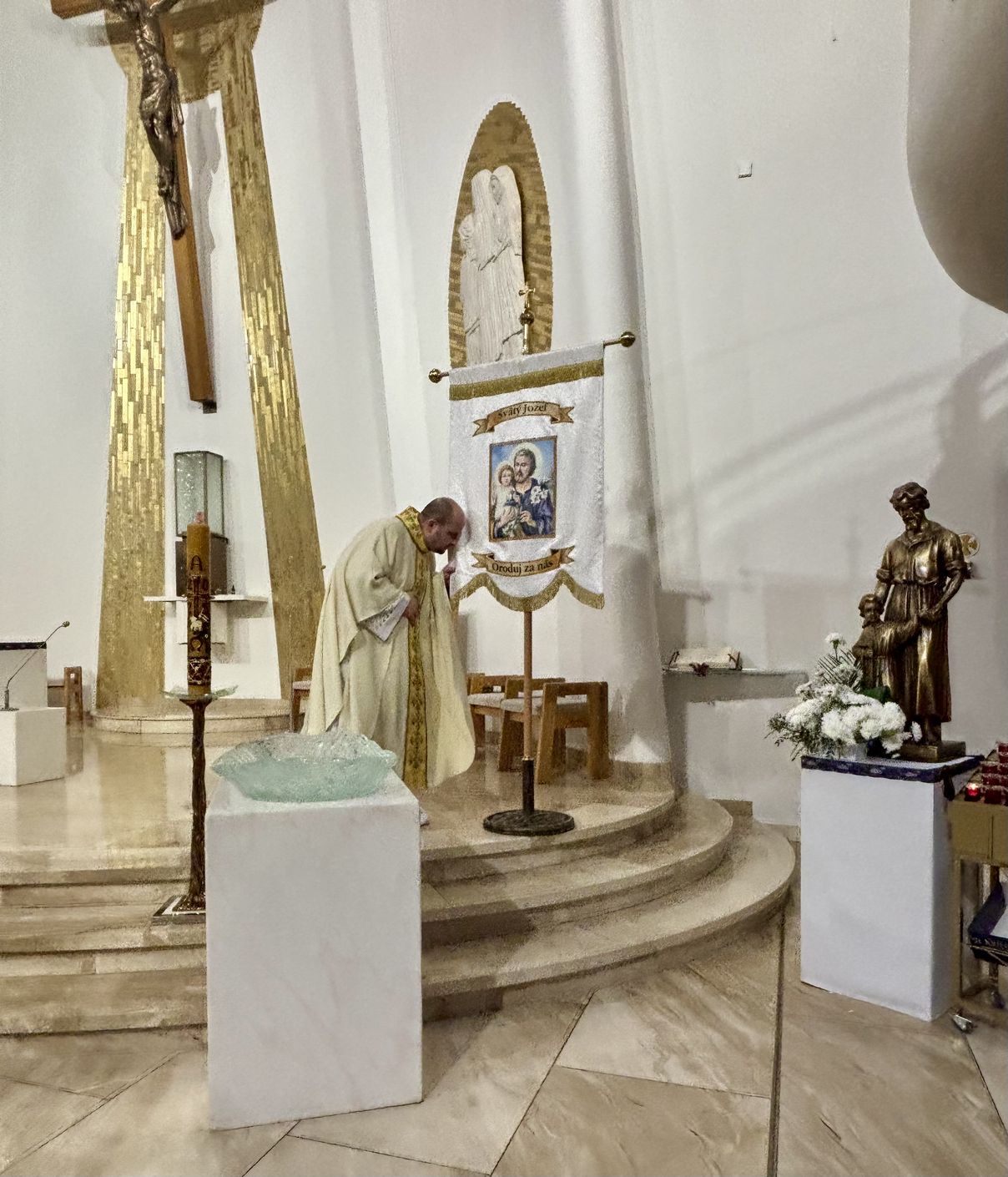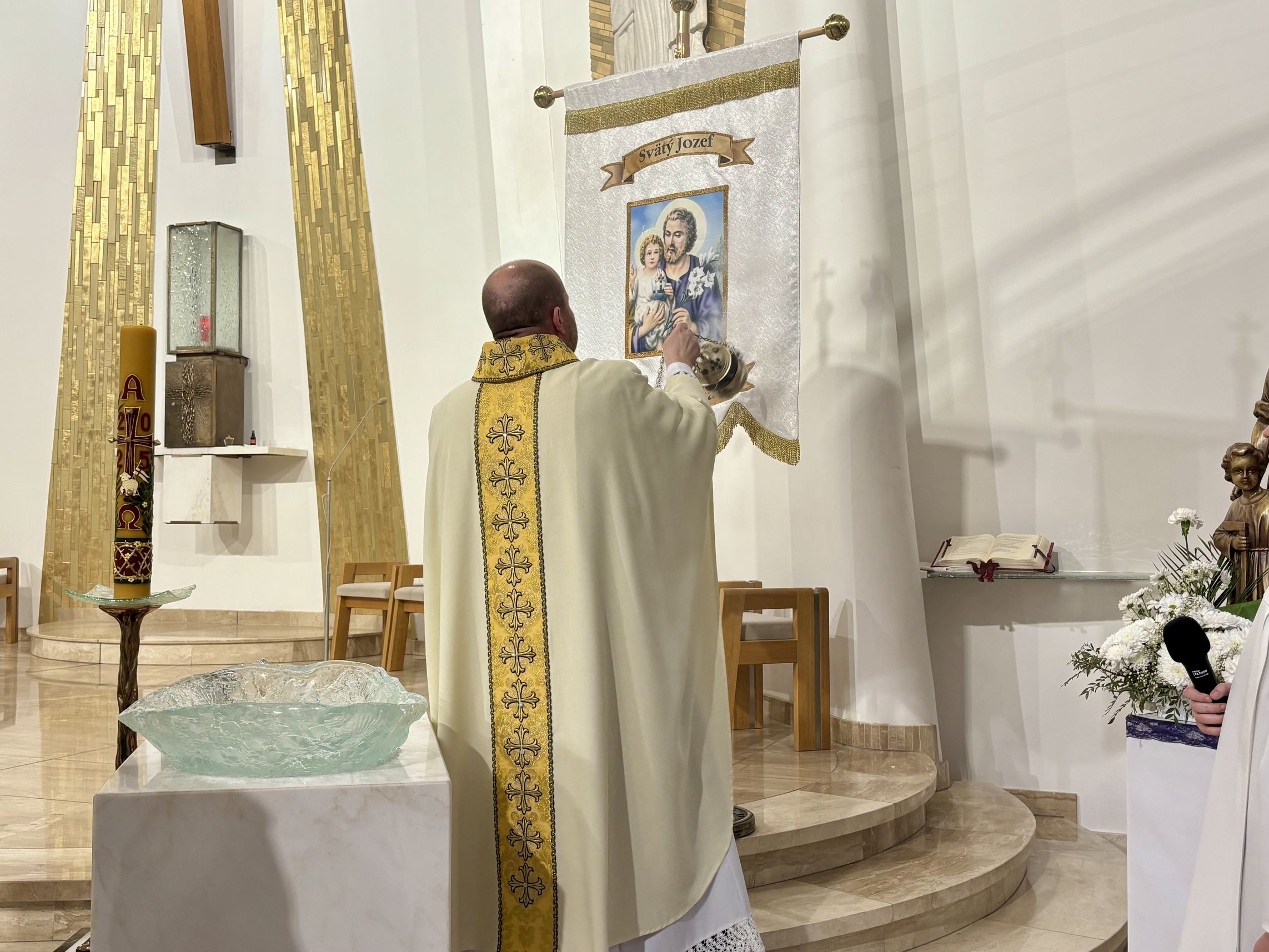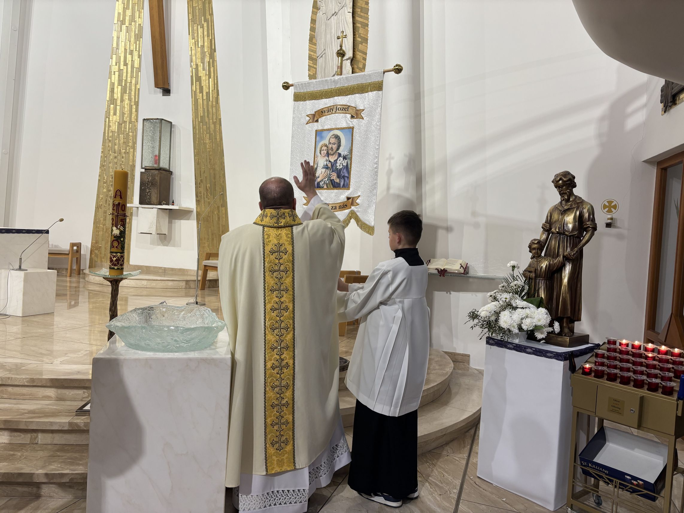 K soche sv. Jozefa robotníka s malým Ježišom pribudla aj nová svätenina, zástava s vyobrazením sv. Jozefa a prosbou: Svätý Jozef oroduj za nás. Nech sú tieto symboly nielen pre mužov ale aj všetkých nás posilou vo viere a znakom úcty k tomuto veľkému svätcovi.
